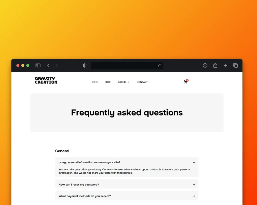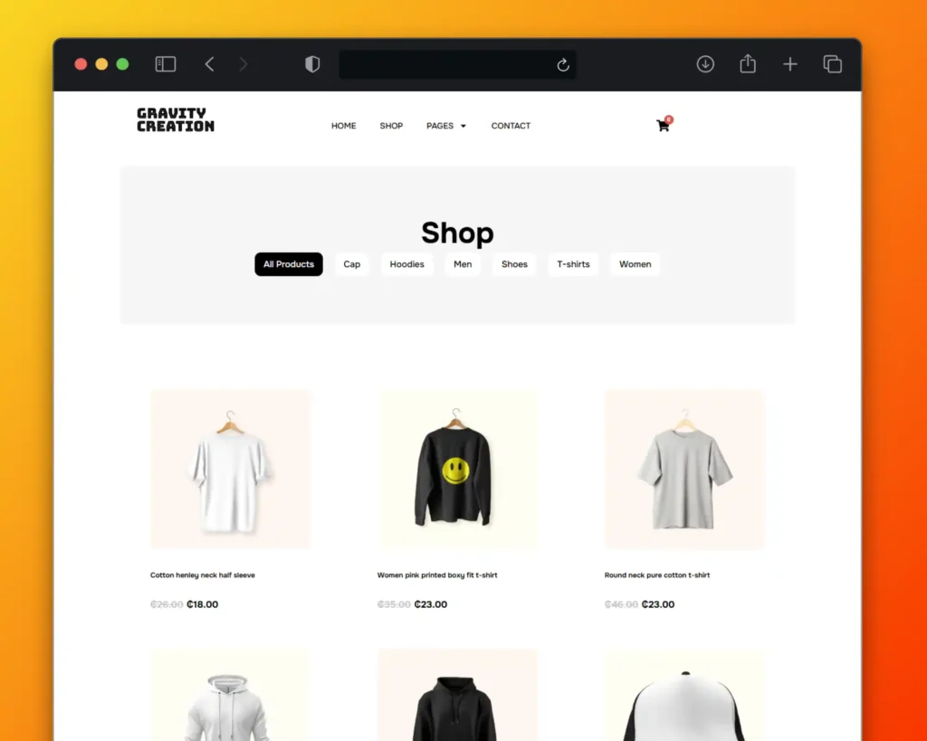 A sleek, timeless, and effortlessly effective online store that cuts straight to the chase of selling your products. Tailor-made for small online stores and merch shops.