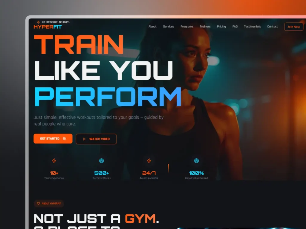 Hyperfit is a bold template for gyms, fitness coaches, and training studios. Packed with sections like Hero, Services, Trainers, Pricing, Testimonials, and FAQs — it’s fully responsive, easy to customize, and built to convert.